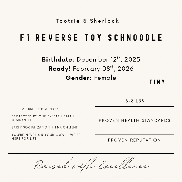 Your Puppy Reservation Deposit locks in the puppy you select and immediately removes them from availability. This deposit goes toward your final adoption investment and ensures your chosen puppy is reserved exclusively for your family.